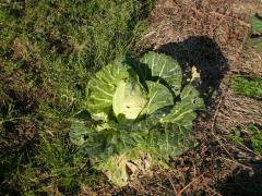 Mes petits choux ont juste commencé à pommer. Celui que j'ai planté le plus vers le nord, derrière un des choux-fleur est bien plus petit que les autres, probablement parce qu'il a manqué de soleil. Un a eu un peu d'escargots. Ils ont un paillage de paille épais. Ils poussent très lentement. Si ça continue comme ça on aura des choux en mars-avril. Craint pas le gel. 06-03-2007. J'avais attendu que les choux forme une pomme rond long temps avant que j'ai compris que j'avais une espèce qui forme de pommes coniques. Ils sont super tendres et bons. On en a toujours un trois-quatre qui reste dans le potager. On en va manger un aujourd'hui. écrit dans le blog sur les choux d'hiver