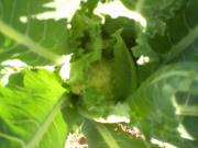Ceux à côté ouest n'ont pas poussé bien du tout. Je crois que c'est parce qu'il y manque du soleil et parce qu'il y sont entre les framboises de bois et les vielles framboises, des ennemis bien connus du chou-fleur. Par contre, ceux qui sont plantés parmi les autres choux poussent très bien. C'est de ceux-là qu'on a mangé.