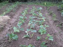 Pour protéger les plantes qui vont passer l'hiver au dehors il faut au moins un léger paillage mais la paille donne de l'abri aux limaces et je ne veux pas ça... Donc j'ai bouquiné un peu. Dans "ravageurs et maladies au jardin - les solutions biologiques" par Otto Schmid et Silvia Henggeler, Terre Vivante, ils disent que la fougère mal repousse les limaces et marche bien comme protection contre le givre en couche léger. Donc je vais l'essayer. Dans "le guide du jardinage biologique" par Jean-Paul Thorez, aussi terre vivante, ils disent qu'il faut un voile d'hivernage en plastique mais les choux, qui sont les seuls plantes trop grandes pour couvrir avec de la fougère, ne semblent pas en avoir besoin. Je pense les laisser pour le moment et ne rien faire sauf les pailler. Ils disent dans tous les deux livre qu'il faut butter aussi. Tous les cucurbitacées sans aucun exception sont mortes à cause du givre, pareil avec les haricots, les pois mange tout, les aubergines, les choux cabus, le poivron mais drôlement pas les piments... Donc j'ai fait la dernière récolte des courges spaghettis, courgettes, haricots Autan (une récolte minuscules mais assez impressionnante si on prend les circonstances en compte), aubergines, les choux cabus et comme je le prends comme juste une question de temps avant les plantes piments sont mortes, les piments aussi. Les haricots Autan et les courges spaghettis sont endommagés par le gel... Il fait très beau!!! Ce qui fait que j'ai du arroser... En plein automne... La rosé ne suffit plus quand le soleil fait aussi chaud pendent la journée... Il y a plus d'eau qui s'évapore au cause du soleil que donne la rosé... Je le trouve bizarre mais c'est probablement normal... Certains parmi les endives sont déjà prêts à manger. On mange toujours plein de chou-raves, de la casque d'or, de la scarole et de la blette. On a commencé avec les rutabagas et bientôt on aura des choux-bruxels et des poireaux. Les chou-fleurs vont encore prendre du temps. Les carottes, les navets et les radis poussent bien, ne semblent pas du tout embarrassés par le gel. Ils poussent plus lentement comme il y a pas beaucoup de soleil. ET!!! On a eu des bons épinards!!! Je les avais complètement oubliés jusqu'à avant hier quand je cherchais de la casque d'or et je jetais un coup d'oeil à côté et là voila!!! Les épinards poussaient, poussent toujours, en tout bonheur bien protégés du gel et camouflés par les mauvaises herbes. Donc la casque d'or et les haricots Autan ne sont plus les seuls "légumes oubliés" dans mon potager ;) Je pense prendre un jour juste pour enlever tous les plantes mortes mais il faut attendre encore un peu de temps comme Marc pense bouger la composte et c'est stupide de l'agrandir possiblement deux fois avant qu'elle soit dans son propre endroit final. Le cimetière "le potager"... Ça a un drôle de tête maintenant... Mais les mauvaises herbes n'hésitent pas d'en profiter... Zoé m'a déjà aidé avec le premier ménage parmi les nouvelles fraises...
