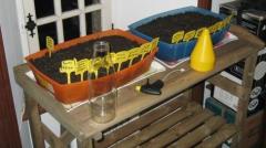 Je croyais que j'allais commencer les semences la semaine dernière mais la terre est toujours trop lourde. J'ai fait une essaye de la retourner hier mais les mottes ne se cassent pas. Au contraire, la terre colle aux outilles. Je suis allé chercher de l'ail des ours mercredi le 14 et je l'ai planté à côté des artichauts que je pense bouger au début avril. C'était pas facile à en trouver comme les feuilles ne sont pas encore sorties de la terre. Mais c'était avant que je me suis souvenu de l'odeur de cette plante. Ensuite j'avais qu'à gratter un peu sur sol pour trouver les petits bulbes à l'aide de mon nés. Ces petites fleures blanches, très mignonnes pu tellement l'ail qu'on ne peut pas les rater. J'aime bien ce mélange entre le pittoresque et cette odeur fort repoussant. Ensuite j'ai trouve des bulbes sur le compost que je crois sont des pâquerettes. Elles ne se sont pas décomposées comme prévu mais se sont mis à pousser à la place. J'en ai ramassé un paquet et les ai planté entre le haie à côté nord comme genre de barrière-limace. J'ai entendu que les liliacées masquent les odeur des autres plantes pour elles. Jeudi le 1er mars. Je suis allée acheter des choses pour les plantations intérieurs mercredi le 21. J'ai trouvé une petite étagère qui je mettrai dans la fenêtre sud dans notre chambre. Ensuite je vais semer dans des bacs pour les chats. Bien sur, je vais les repiquer dans des vraies pots après. Je me demande si je vais y mettre juste du terreau ou si je vais le mélanger avec notre terre. Jeudi le 22, Mose et moi sommes partis dans le midi pour rencontrer des amis et la famille de Mose. Une tante de Mose, Claire m'a dit qu'elle fait le plus part de ses semis à l'intérieur, qu'elle utilise un couche en plastique en dessus ses semis et qu'elle les met à côté d'un radiateur. Je ne sais pas à quoi sert le plastique... Garder l'humidité ? Chauffer ? Je vais essayer en tout cas. Ça me semble tellement délicat que tout protection me semble raisonnable. Elle suit la lune et elle en a parlé un peu ce qui m'a intéressé. Elle m'a donné les coordonnées de deux livres que voudrais trouver juste pour savoir quand je fait quoi en bonne lune pour voir s'il y a des différentes entre les semences. J'ai mis les plans de rotation en ligne sur Le planification pour 2007 avec des petits textes. Je vois pas encore le page comme fini mais ça a commencé. L'ail des ours s'est bien repris et les bulbes que je crois sont des pâquerettes sont bien en train de pousser. On a toujours des carottes, des navets, des choux, chou-fleurs, de la mâche etc. Ça pousse toujours, même en février. Le stage à Stage à Sainte-Marthe s'approche. Ah oui!!! J'ai oublié de dire que je vais partir en stage à Sainte-Marthe. Maintenant je suis trop fatigué pour raconter. Faut que je reviens bientôt. Bonne nuit!