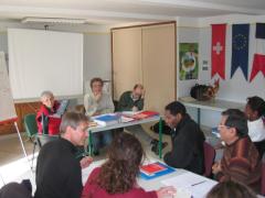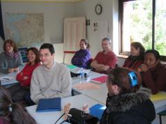 J'aurais jamais pu créer un contenue meilleur. Aujourd'hui c'est le deuxième jour et il faut dire que le premier était rempli de bonnes surprises. Jean-Yves a introduis le cours en parlant de la diversité humain, des jours dures au milieu d'un projet, des complications de vivre ensemble, du fait qu'ils essaient d'utiliser de plus en plus des ordinateurs à la place des papiers et de l'importance de la mémorisation. Je croyais que j'allais me retrouver parmi des verts conventionnels qui ne disent que des choses que j'ai déjà entendu depuis mon enfance mais heureusement j'avais tort et peut-être que j'ai du travaille à faire sur mon propre arrogance. L'équipe semble bien diversifié, certains sont des parleurs/incubateurs et des autres des faiseurs, ce qui pour moi signifie un équipe durable. Ils sont pas trop bien organisés ce qui pour moi signifie qu'il y a de la place pour être humain. On ne veut pas de discipline sans merci. Maintenant il faut que j'y aille. Il est huit heures du matin et la classe commence à neuf heures. 17-03-2007. J'ai fait deux serres, préparé la terre, semé les premiers légumes, replanté l'oseille et la ciboulette et coupé les buissons depuis la dernier fois que j'ai écrit. Je sais pas où commencer. Commençons par la mini-serre. On a commencé par acheter un moto-bineuse avec Marco. J'ai appelé Marc Grollimund, un prof de Sainte-Marthe pour savoir comment en choisir une. Il disait que les meilleurs sont celles avec une moteur fort et qui tourne doucement. Ça c'est passé très vite. On a demandé juste ça de mec qui nous a aidé dans la boutique et on a pris la première qu'il nous a montré. C'était une bonne idée d'en prendre une forte. C'est quand même presque limite qu'elle supporte notre terre dense et lourd. Ensuite j'ai trouvé cette outille que Jean-Claude m'a montré quand on est allé chez lui. En fait c'est surtout Thanh qui s'en est servi. Il est excellent pour enlever les racines les plus profondes. Pas de problème d'en enlever jusqu'à 20-25 cm de profondeur mais il ne retourne pas très bien. Notre terre est trop lourde. Je voudrais bien une grelinette en plus juste pour ça. J'ai eu beaucoup d'aide avec le désherbage de Thanh et Christelle. Ça prenais tellement plus de temps et d'énergie que je croyais que je sais pas si je m'en serrai sorti sans elles, toute seule. MERCI MILLE FOIS!!! Ensuite j'ai semé des oignons jaunes et rouges, du persil, du cerfeuil, des carottes, des radis et des navets en pleine terre. Christelle m'a aidé. Les poireaux, oignons blancs, des chou-raves bleus et blancs, des chou rouges sont semés dans la serre et j'y ai essayé de semer du céleri et du basilic aussi. Je croyais pas qu'il allait refaire froid, c'est pour ça que je dis que j'ai essayé de semer le basilic et le céleri, je sais pas si va marcher maintenant quand le froid est revenu et il disent sur le météo qu'il va refroidir encore plus. Maintenant le blog sur ce qui se passe à Sainte-Marthe continu sur http://iv.lir.be/tiki-view_blog.php?blogId=1
